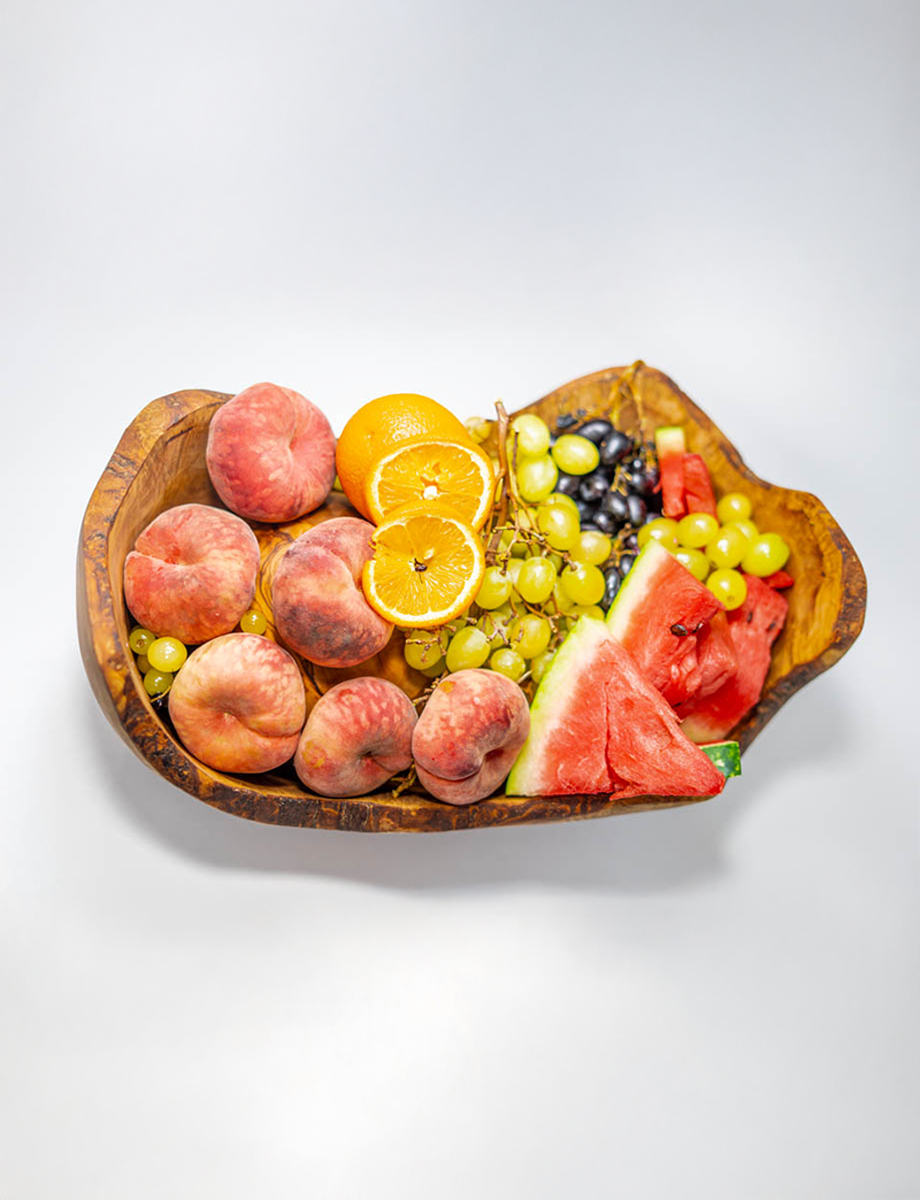 Coupe Fruit Sans Manche fabriqué en bois tunisien, met en valeur des courbes lisses et fluides qui soulignent son design naturel. Parfait pour exposer des fruits, il apporte une touche artistique et rustique à toute cuisine ou salle à manger.