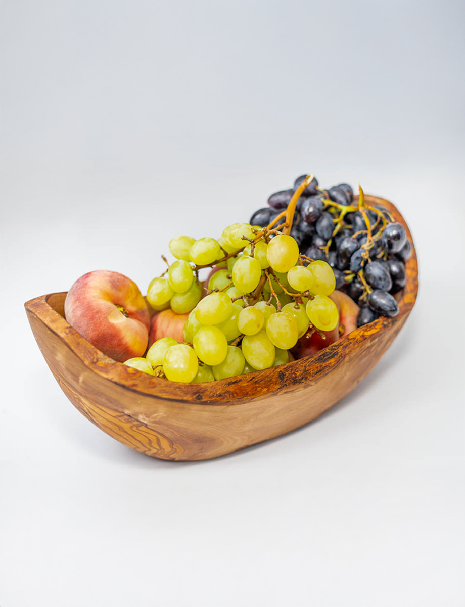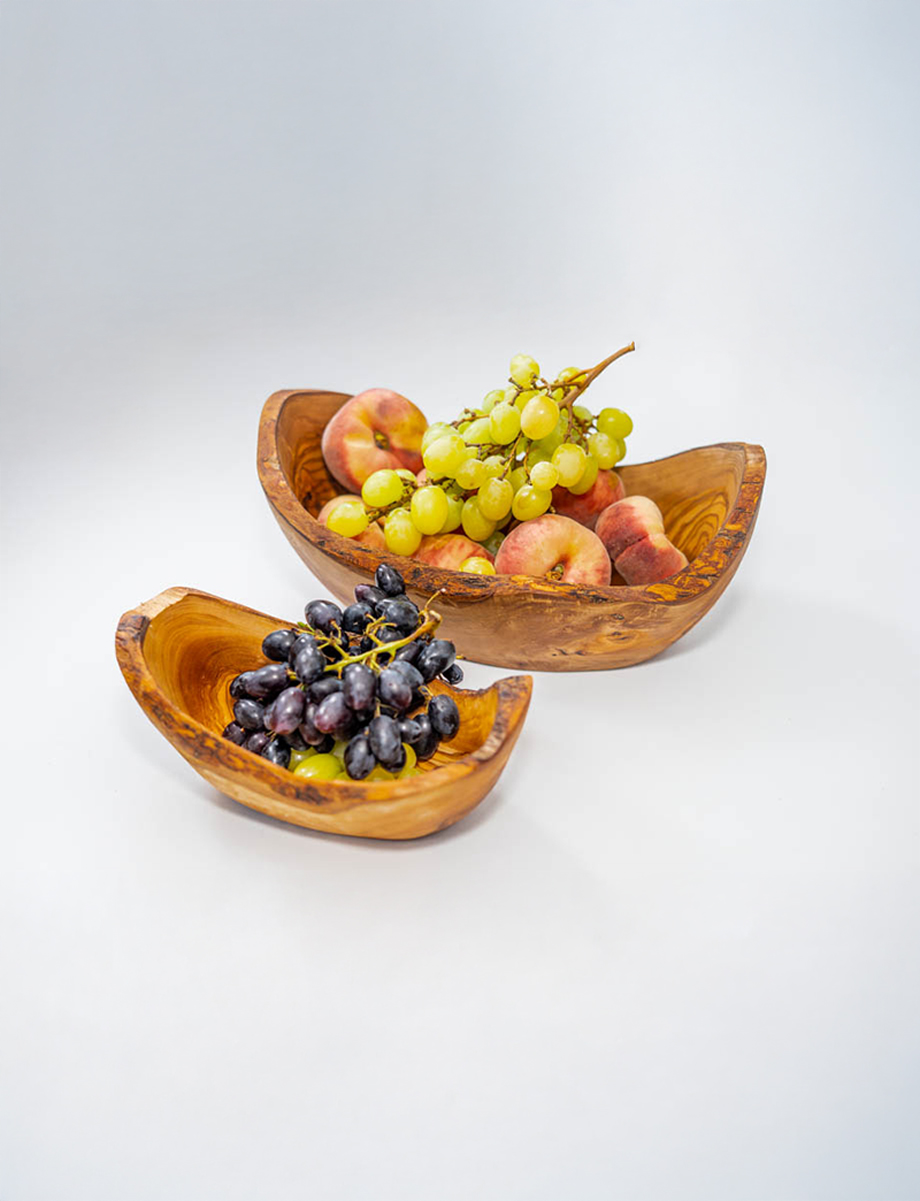 This handcrafted fruit basket, made from premium Tunisian wood, features a sleek, handle-free design. Its open structure elegantly displays fruits while adding a natural, decorative touch to any space.