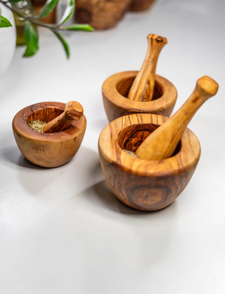 Mortier conique « Rustique » met en valeur la texture et le grain unique du bois grâce à sa finition naturelle. Idéal pour moudre herbes et épices, il apporte une touche authentique et chaleureuse à vos indispensables de cuisine.