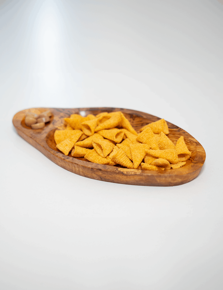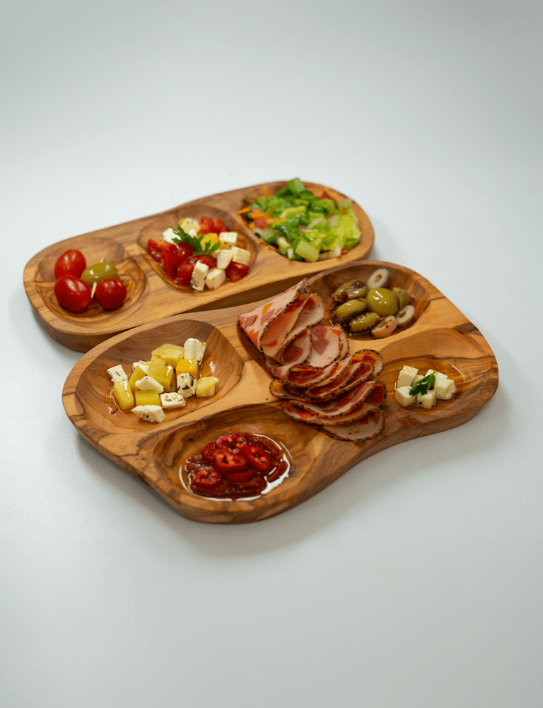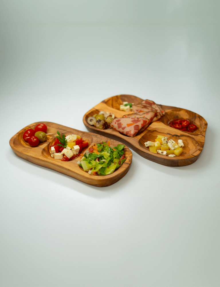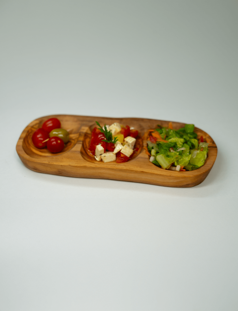 Plat Apérétif Rustique fabriqué en bois tunisien, est parfait pour servir des encas ou de petites bouchées. Son design compact et le grain naturel du bois en font un ajout élégant à toute présentation de table. »