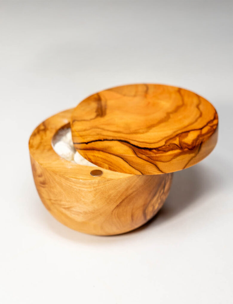 Pot a Sel avec Couvercle pivotant de haute qualité, est parfait pour conserver vos encas ou petits objets tout en les gardant frais. Son design unique et sa finition naturelle ajoutent une touche rustique et charmante à votre cuisine ou salle à manger.
