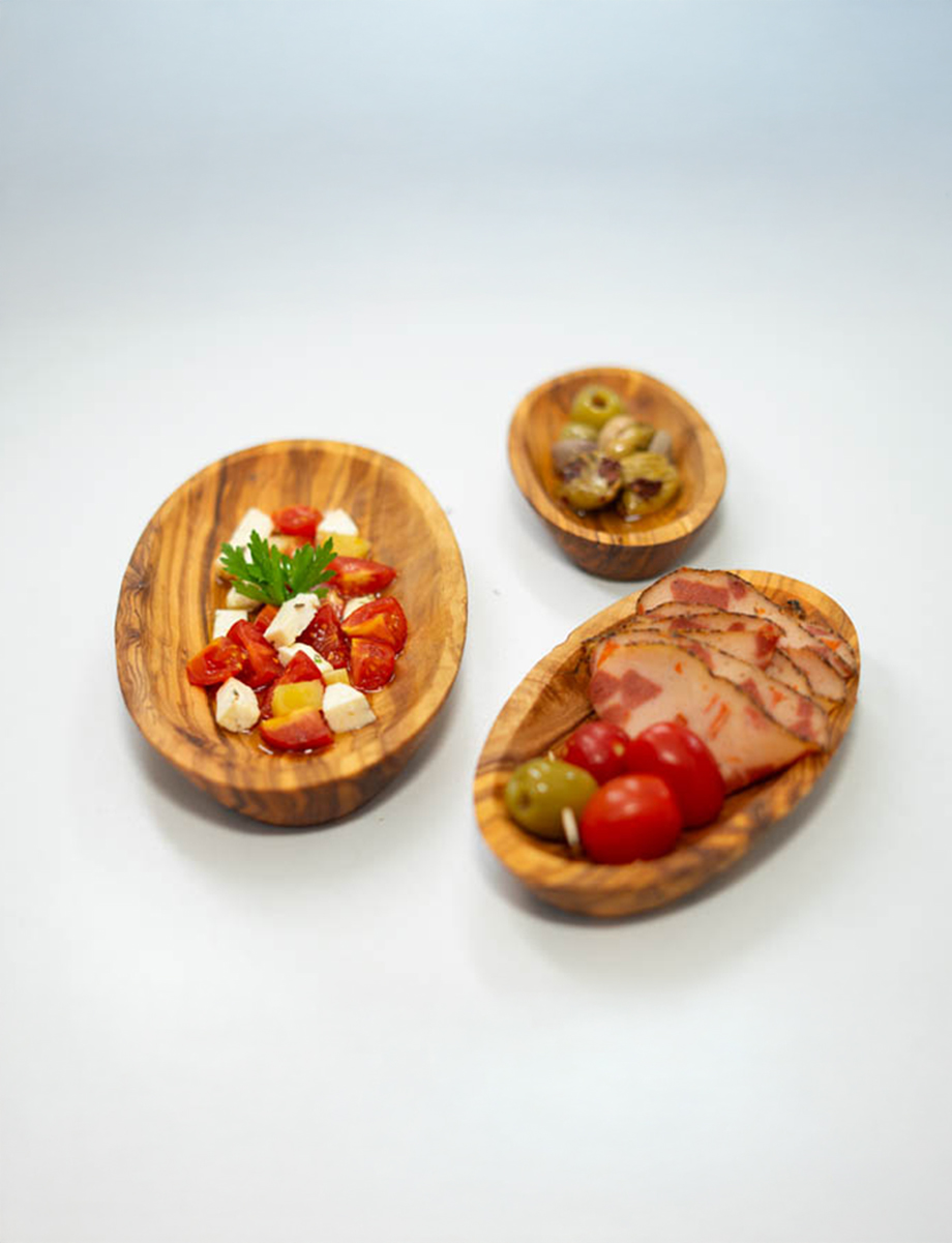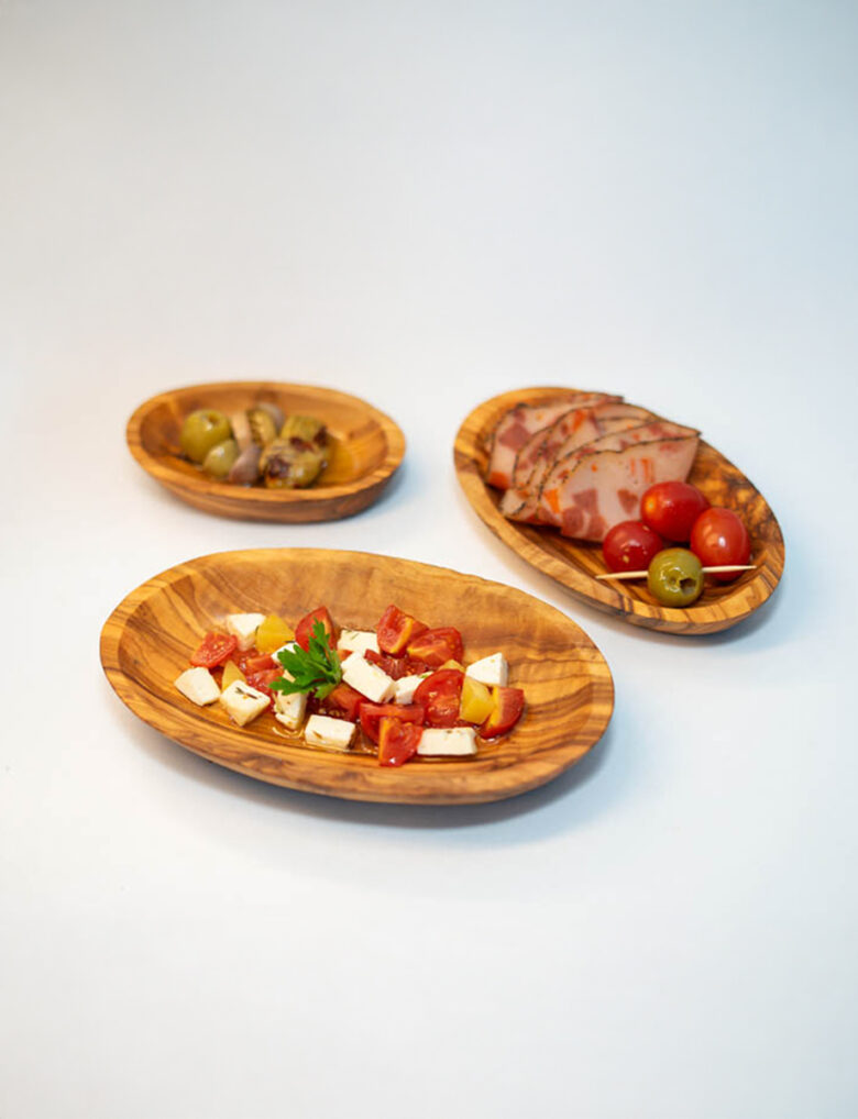 Ravier Oval fabriqué à partir de bois tunisien de qualité supérieure, présente un design lisse et élégant, idéal pour servir des encas ou de petites portions. Ses courbes naturelles et le grain du bois ajoutent une touche de sophistication rustique à toute table.